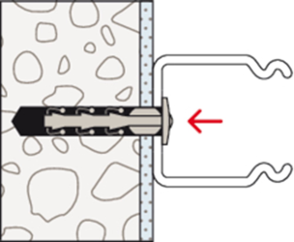 De fischer Steckfix plus plug SF plus SD is een montagevriendelijke oplossing voor de bevestiging van kabelgoten en kabelbeugels. De plug van kwalitatief hoogwaardig nylon combineert een plug en schroef in een component. De innovatieve elektrobevestiging wordt zonder schroef in het boorgat gestoken en fixeert lasten tot 11 kg op betrouwbare wijze in beton en volle baksteen. De Steckfix plus plug SF houdt ook bij extreme temperaturen van -20°C tot +80°C.