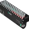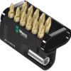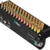 Extreem harde bits, voor universeel gebruik. BiTorsion-bits met torsiezone, waarin bij belastingspieken kinetische energie wordt afgeleid. Met zachte BiTorsion-zone om torderen van de bit-punt bij hoge belastingen te voorkomen. Hierdoor wordt de levensduur van het product aanzienlijk hoger. Met bijpassende houder ter verlenging van de levensduur. Voorzien van Rapidaptor-technologie, om de bits te kunnen plaatsen zonder daartoe de huls te moeten bedienen. Om de bits weer te verwijderen, hoeft u de huls slechts naar voren te schuiven – zo kunt u bits zelfs met 1 hand razendsnel wisselen. Voor plaatsing van bits met 1/4″ buitenzeskant-aandrijving conform DIN ISO 1173-C 6,3 en E 6,3. Voor plaatsing in de schroefboormachine of in boorkop van een elektronisch geregelde boormachine. De meerdelige Bit-Check overtuigt door het lage gewicht en uitstekende compactheid. Daarbij zorgt het zachte materiaal in het onderste gedeelte van de Bit-Check voor een betere houvast voor de bits en maakt tegelijk het uitnemen daarvan makkelijker. Het profiel en het formaat van de bits zijn gemakkelijk te herkennen dankzij de Wera ‘Take it easy’-Toolfinder met kleurcodering en duidelijk zichtbare beschrijving.