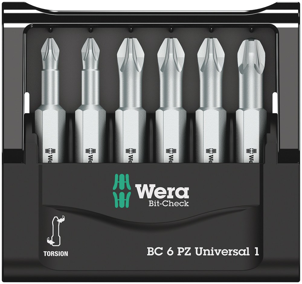 6 50 mm lange Wera Pozidriv*-bits, overzichtelijk en compact gerangschikt in handige Bit-Check. Met extreem harde bits, voor universeel gebruik. Torsievorm om voortijdige slijtage te voorkomen. * Pozidriv = geregistreerd handelsmerk van de firma European Industrial Service Ltd.