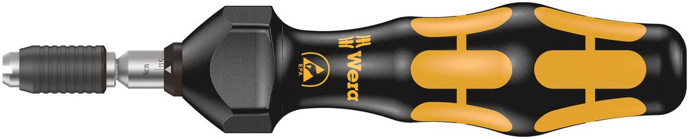 Wera draaimomentschroevendraaier. Goed beveiligd tegen elektrostatische energie en daaruit voortvloeiende schade. Variabele draaimomentinstelling, uiterst nauwkeurig. Vereist draaimoment eenvoudig instelbaar, zonder extra gereedschap. Schaalwaarde goed leesbaar. Rapidaptor-snelwisseltechnologie maakt razendsnel wisselen van bit mogelijk. Onbegrensd losdraaimoment voor het losdraaien van vastzittende schroeven. Meervoudige Kraftform-handgreep met geïntegreerde harde en zachte delen voor een hoge werksnelheid en bescherming van de handen. Geschikt voor bits met 4 mm Halfmoon-aandrijving (Wera reeks 9) en 4 mm HIOS-aandrijving (Wera reeks 21).