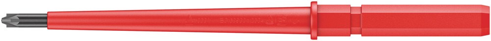 VDE-kling voor Kraftform Kompakt VDE-greep/wisselkling-systeem voor razendsnel verwisselen van de kling zonder extra gereedschap. Combi-profiel sleuf/Pozidriv*, in het bijzonder geschikt voor klemmenblokken, zekeringkasten, schakelaars en relais. Individueel getest gereedschap conform IEC 60900. Individueel getest bij 10.000 V voor veilig werken bij de toegelaten spanning van 1.000 V. De Wera Black Point-punt biedt een hoge pasnauwkeurigheid en extra corrosiebescherming. * Pozidriv = geregistreerd handelsmerk van de firma European Industrial Service Ltd.